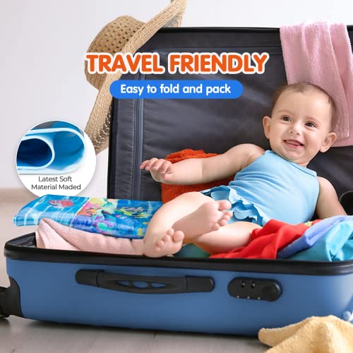 Easy to use, enjoy everywhere: Simply fill the outer ring with air and the inner mat with your desired effect of tap water (warm water 20-40℃ also works) and let the fun begin. After use, dry and fold the toddler water play mat into your bag (a pad size) to carry around anywhere! It can be a fun play activity center for your baby whether on the floor, the beach, the grass, or the pool!