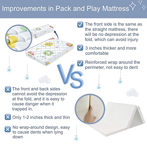 Foldable Pack and Play Mattress Topper 38″ x 26″ x3″- Playpen Premium Foam for Pack and Play, Portable Foldable Playard Pad, Pack n Play Mattresses Topper for Babies & Toddlers
