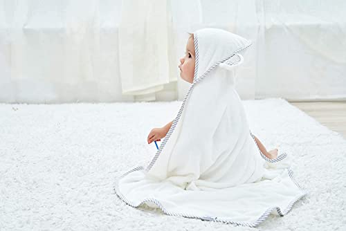 HIPHOP PANDA Bamboo Hooded Baby Towel – Soft Hooded Bath Towel with Ears for Babie, Toddler,Infant – Ultra Absorbent, Natural Baby Towel Perfect (White, 30 x 30 Inch)
