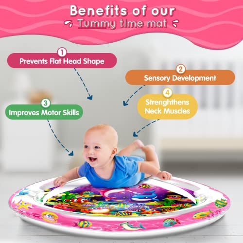 Infinno Tummy Time Mat Premium Baby Water Mat, Baby Toys for 3-6 6 to 12 Months Girl and Boy Infants, Perfect Baby Gift, Pink Circle Mat