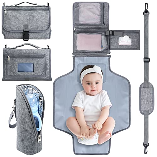 Easy to Carry: the portable diaper changing mat measures about 2 x 11 x 9 inches and can hold up to 12 months baby, which is very lightweight and compact when folded, and the shoulder bag with adjustable and removable straps design makes it easy to secure to the stroller, bag or wrist