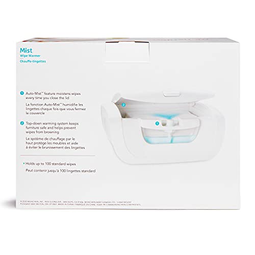 Give your baby The comfort of a warm, moist wipe for every diaper change. The mist wipe warmer by Munchkin offers a revolutionary yet simple way to keep your baby wipes just right. This is the only wipe warmer with a misting system that releases moisture each time The lid is closed. No muss or fuss – simply fill the removable water reservoir with water, load your wipes, plug in the unit, and you’re good to go. For additional moisture as desired, just press the misting button. And with the heating system housed in the top lid, you don’t have to worry about being faced with a brown, dried-out, or cold wipe ever. No more dry wipes!