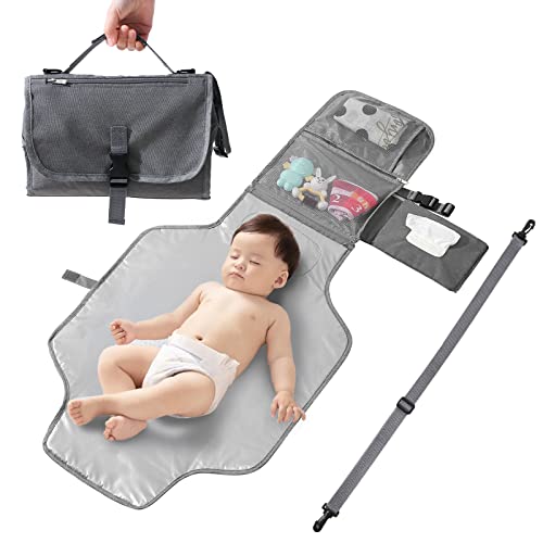 Portable Changing Pad, Waterproof Detachable Travel Changing pad for Newborn Girl Boy, Baby Changing Mat with Wipes Pocket & Shoulder Strap Foldable Diaper Changing pad, Baby Shower Gifts