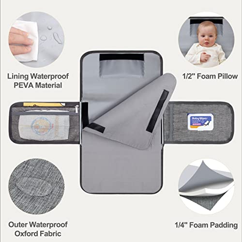 Comfortable for Babies: The baby changing mat has a 1/2″ soft foam pillow and 1/4″ foam padding, providing a soft and comfortable for your little babies. Useful for changing diapers in public where are not always clean.