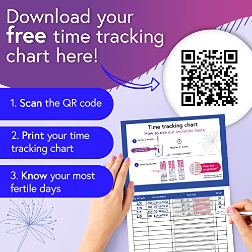 Keep record: Scan the QR code to download our free ovulation time tracking chart and use it to identify your fertile window. By analyzing your test strips, you can track your ovulation progression and minimize the chances of missing your LH surge.
