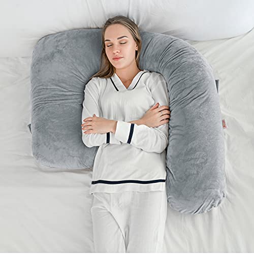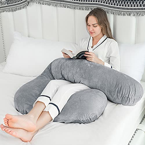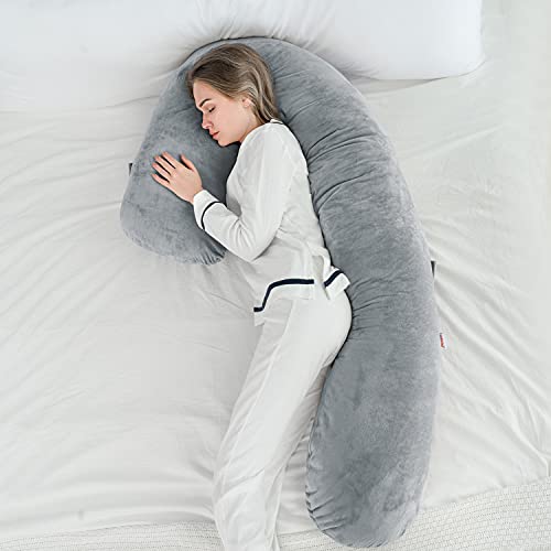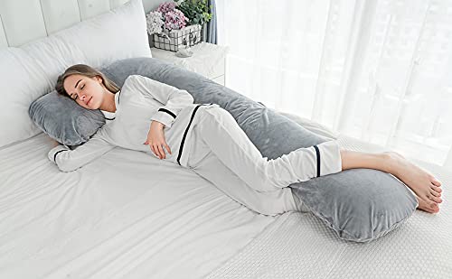 RICH FILLING MATERIAL: The filling of the pregnancy pillow is high-grade 7D PP soft hollow fiber, high rebound, easy to adjust and no noise, offers comfort side sleeping. The breathable inner cover is delicate fabric, can be used for a long time and the outer case is 100% soft velvet which is easy removable and machine washable.