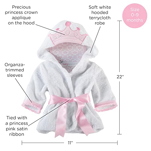 Baby Aspen Little Princess Hooded Towel Robe, Baby Shower Gifts, 0-9 Months, Baby Bath Towel/Spa Robe