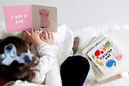 Kate & Milo’s animal board books set is an adorable animal themed book collection that will teach your little one about sea animals, jungle animals, zoo animals and farm animals