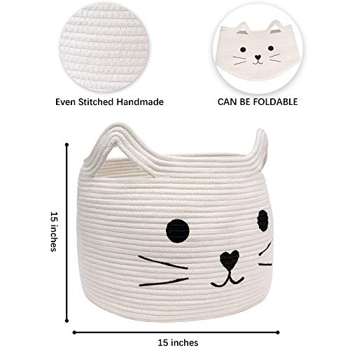 👶SAFE AND HEALTHY MATERIAL:100% ECO cotton rope and jute with no bad chemical smell, it is good for you and your family health. Unique Cartoon Design:Cute cat face design with excellent workmanship, makes the woven storage basket adds sweet flair to your home.Neutral color and cute cat face design of the pet basket is delicate and lovely, which can be a good decoration of your space
