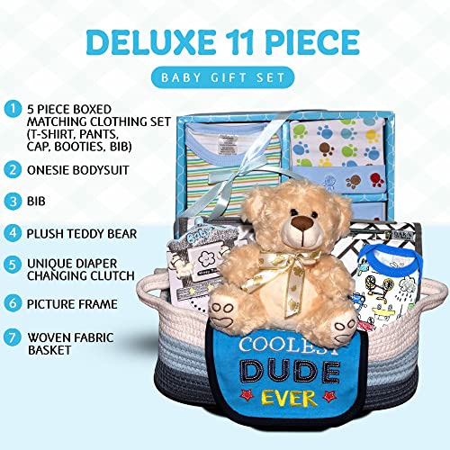 Welcome Home Precious Baby Boy Gift Set, Baby Layette Set with New Baby Essentials, Newborn Baby Gift Set for Expecting Moms, Blue – Nikki’s Gift Baskets