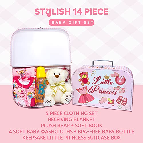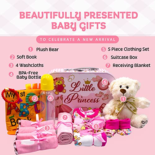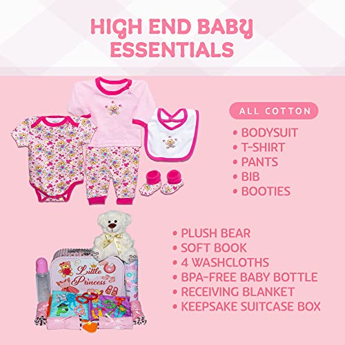 Beautiful Presentation, Perfect Baby Shower Gift – No need for a fancy gift box to wrap our new born baby package. Our unique new baby girl shower gifts come in a charming keepsake suitcase box with real metal clasps and handle – perfect for displaying at a baby shower or baby’s room.