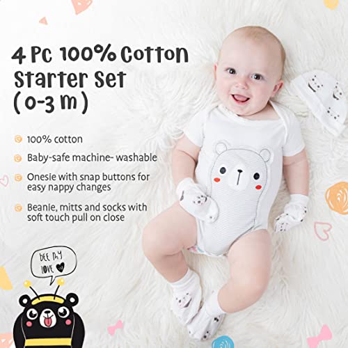 📸 STYLISH & CONVENIENT: Our 4 piece 100% cotton starter set gets baby picture-ready without the fuss! Changing is a breeze with snap-buttons on the onesie, while design-matched accessories get baby stylish easy-peasy!