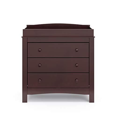 The Graco Noah 3 Drawer Chest with Changing Topper, the newest addition to Graco’s family of chests and dressers and part of the Graco Noah Collection, is the perfect addition to your nursery or kids room. Featuring 3 spacious drawers to store and organize your nursery or bedroom essentials, the Noah is constructed with sturdy, durable, high-quality engineered wood – a warp-resistant and twist-resistant material that is sure to last the test of time. Also, the Noah includes an attached changing topper that has been designed to fit any standard-size changing pad. The Noah’s quality construction includes smooth-gliding Euro-glide drawers with safety stops, and German cam locks. Also, the Noah’s stain-resistant surface is easy to wipe clean, and its universal design and easy-to-match style makes it perfect for any nursery or kids room. For extra peace of mind, the Noah has been expert tested to meet or exceed all applicable safety standards. Also, it’s backed by a 1-year limited manufacturer’s warranty and supportive Customer Care team. Easy assembly required. Graco’s quality line of nursery and kids room chests and dressers are exclusively manufactured by Storkcraft, an award winning brand with over 75 years of experience in nursery furniture.