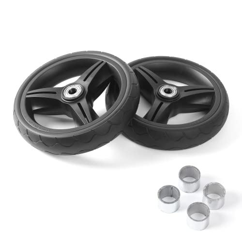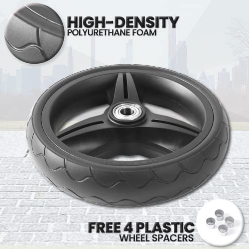 Performing a DIY replacement can be daunting, but this set of front wheels will make the process easier. This set includes 2 front wheels (with plastic rims and high-density polyurethane foam) and 4 pieces of plastic wheel spacers.