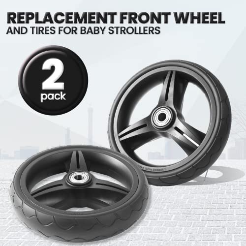 REPLACEMENT FRONT WHEEL AND TIRES FOR BABY STROLLERS – This set of 2 front stroller wheels is not the exact replacement, but it is an exact fit. Each foam tire has a unique tread pattern that is suitable for all weathers and a wider variety of terrain compared to stock tires.