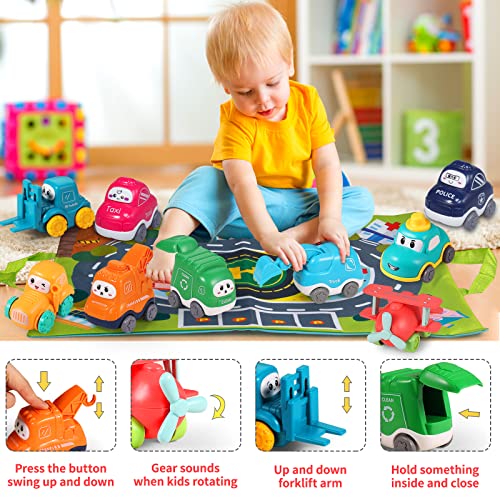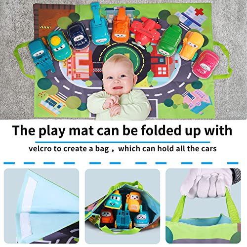 ALASOU 9 Sets Baby Truck Car Toy and Playmat/Storage Bag|Baby Toys 12-18 Months|Toys for 1 2 3 Year Old Boy|1st Birthday Gifts for Infant Toddlers