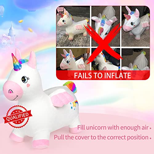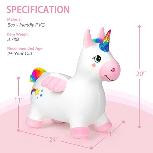 Specification: INPANY Bouncy Unicorn Horse Plush for Toddlers – Bouncing Horse Hopper, Ride on Animal Toys for Girls Boys, Inflatable Riding Gifts – Plush Covered (Include Pump)