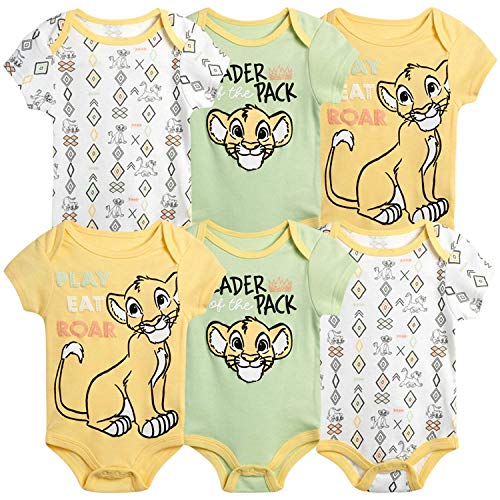 Disney Baby Boys 6 Pack Bodysuit -Mickey Mouse & Friends, Lion King, Winnie the Pooh Bear (Newborn/Infant)
